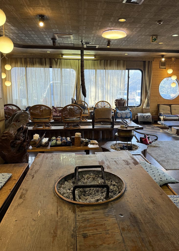 お風呂の後はゆっくりくつろげるスペース。山の中にある秘境温泉と美味しいお食事がお勧めです。