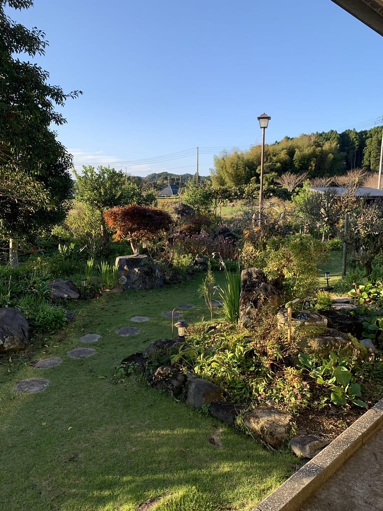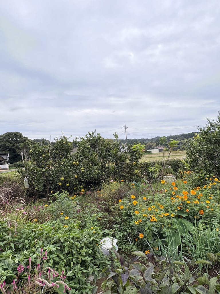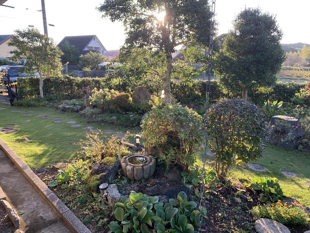 秋空と庭の木々や植物たちが少しずつ彩りを深めてきました。
